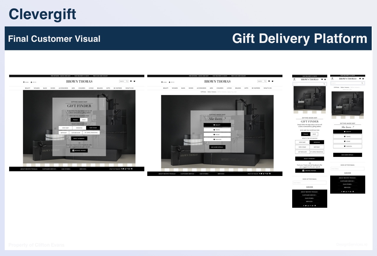 While Head of UX for this Digital Giftcard Startup, I directed the Product Design of the new CleverGift Platform resulting in a brand new product and service, and another 2 Million investment secured. My team redesigned and customised the platform for global retailers including Brown Thomas, ShopDirect, Zalando, Footlocker & eBay.